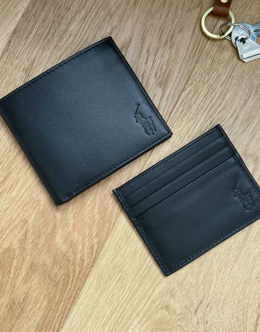 Polo Ralph Lauren Coffret cadeau portefeuille deux volets en cuir et porte cartes avec logo Noir