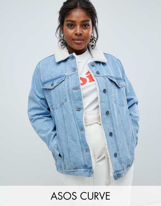 ASOS DESIGN Curve Veste en jean avec col en imitation peau de mouton Bleu d lavage moyen