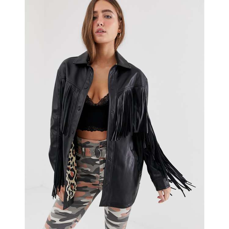 Veste en jean outlet a frange bershka, Yokbeer Veste en Jean a Franges et Strass pour Femme Manteau de outlet