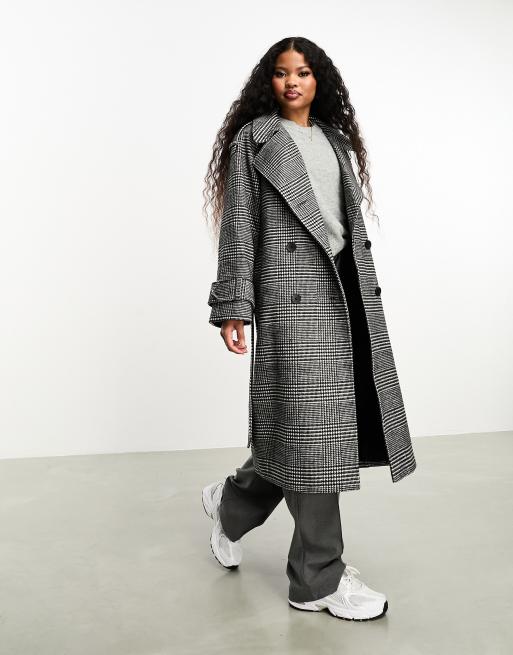 Trench outlet à carreaux, ASOS DESIGN Petite Trench coat carreaux embl matiques Noir et blanc outlet