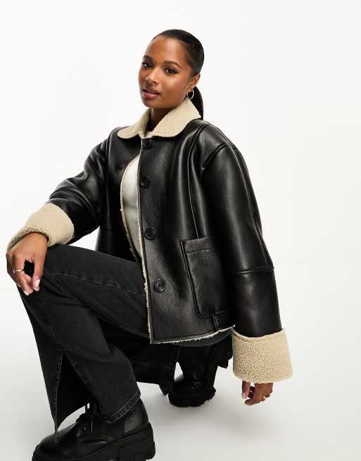 ASOS DESIGN Petite Veste en imitation peau de mouton contrecoll e Noir taupe