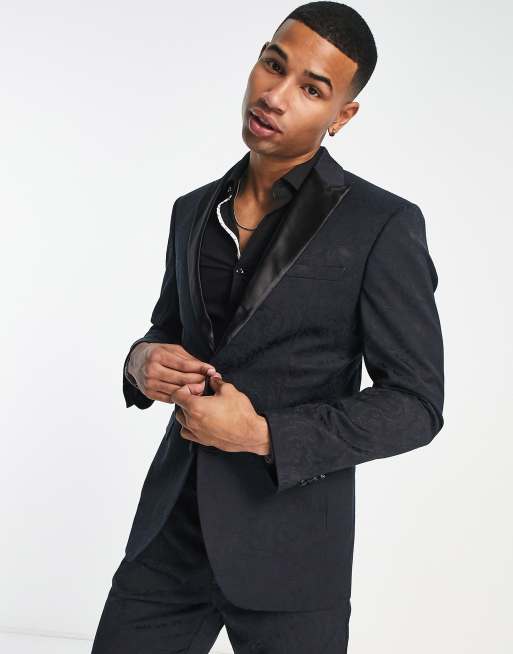 New Look Veste de costume ajust e en jacquard Bleu marine ASOS