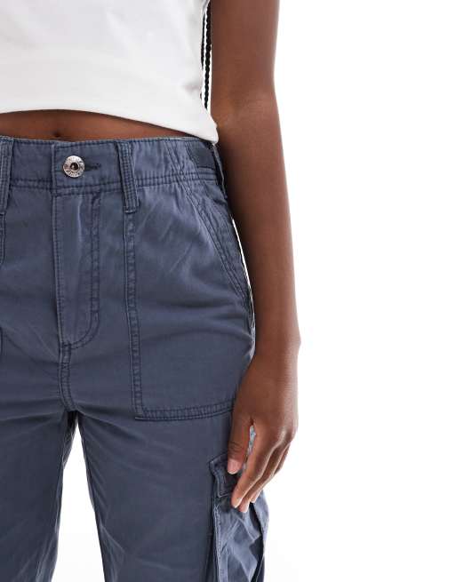 Bershka straight leg cargo pants in graphite blue