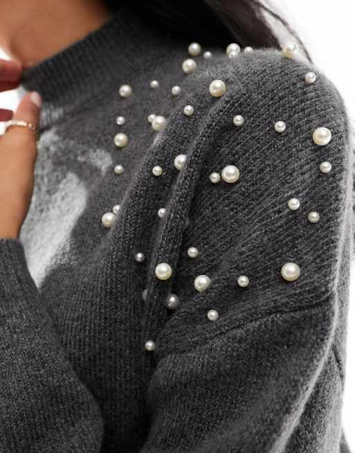 Pieces Pull avec perles nacr es sur les paules Gris