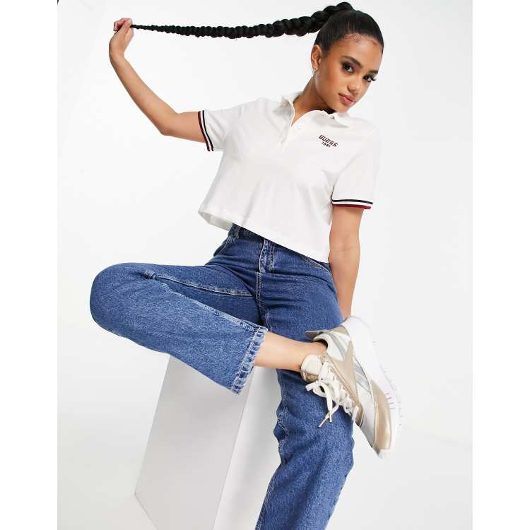 Guess cropped polo shirt in ecru ASOS