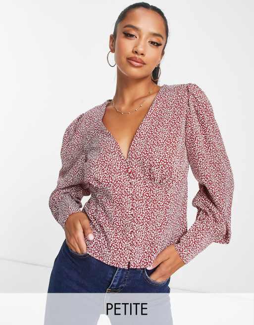 Blouse outlet leopard rouge, Glamorous Petite Blouse ajust e boutonn e avec manches ballon outlet