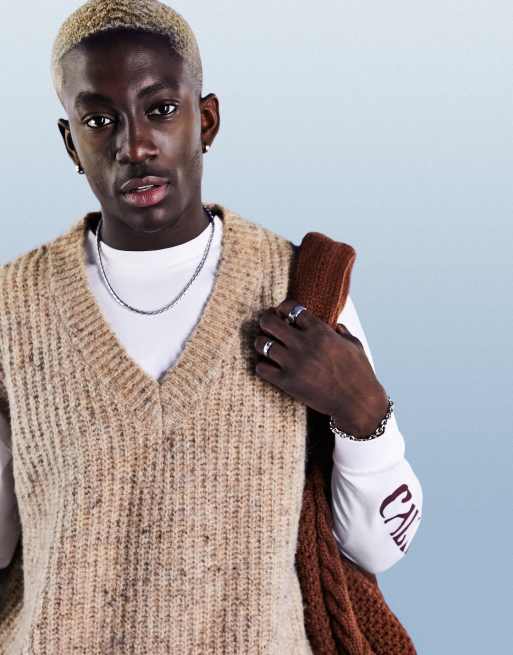 ASOS DESIGN Pull sans manches oversize en maille torsad e avec effet us Beige