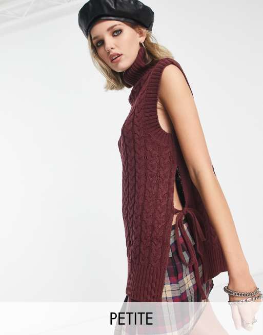 Violet Romance Petite Pull sans manches col roul nou sur les c t s Rouge fonc