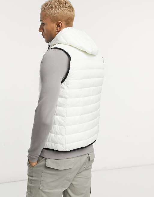 Bershka Padded Vest With Hood In Ice White 48 OFF