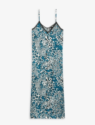 The Kooples Silk Printed Lace Trim Slip Dress In Blue White ModeSens