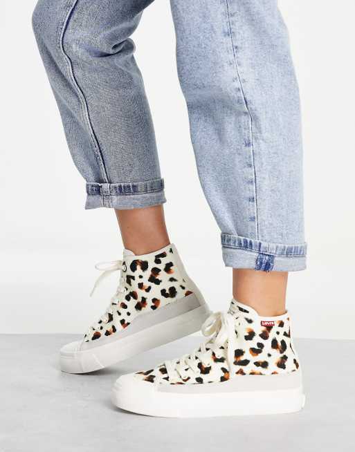 Baskets Femme montantes cuir leopard chic elegantes semelles