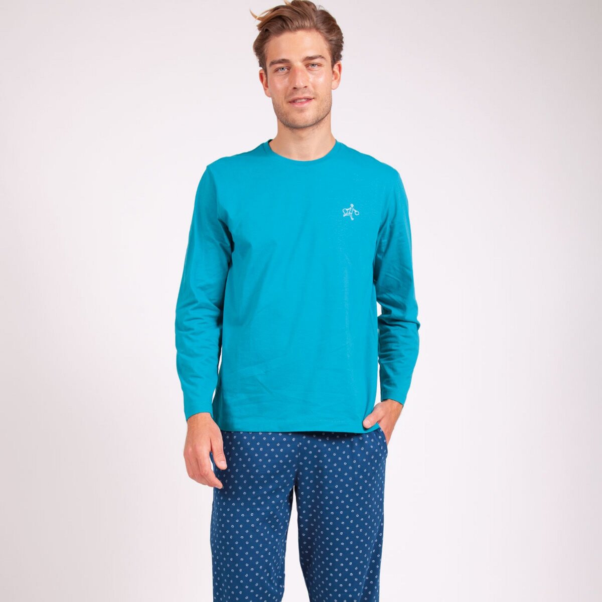 Ensemble pyjama col T pour homme en Coton Bio bleu