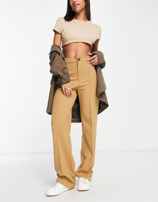 Pantalon camel outlet taille haute, Pantalon large et droit taille haute Pimkie outlet