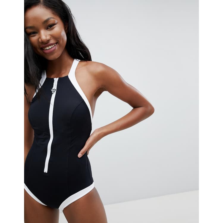 Seafolly Maillot 1 pi ce zipp sur le devant avec col montant et bords larges