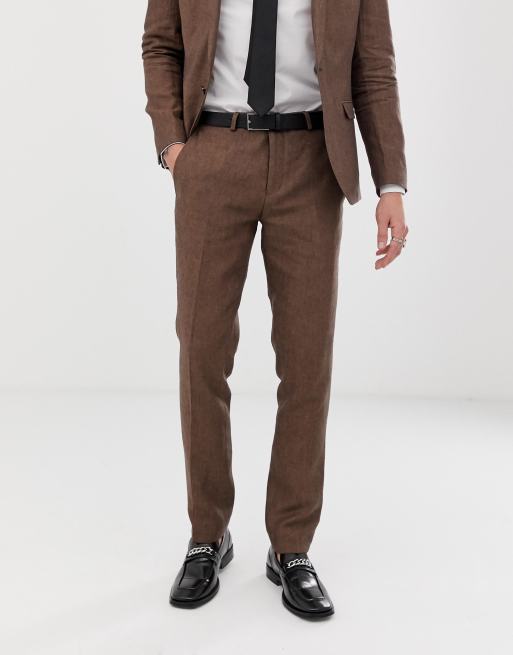 Twisted Tailor Pantalon de costume super slim en lin Marron