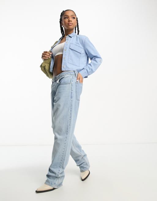 Stradivarius Chemise cargo courte en jean Bleu clair