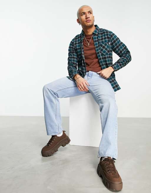 Timberland Chemise manches longues carreaux en tissu souple Bleu moyen