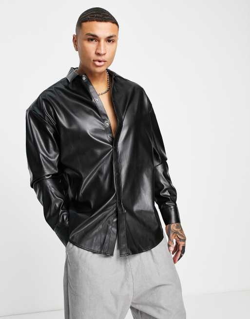 Chemise simili outlet cuir homme, ASOS DESIGN Chemise ultra oversize imitation cuir Noir outlet