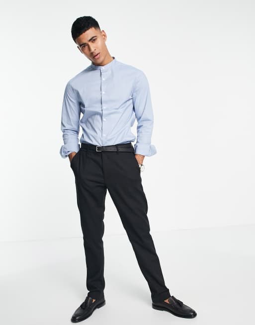 ASOS DESIGN Chemise ajust e col Mao Bleu clair ASOS