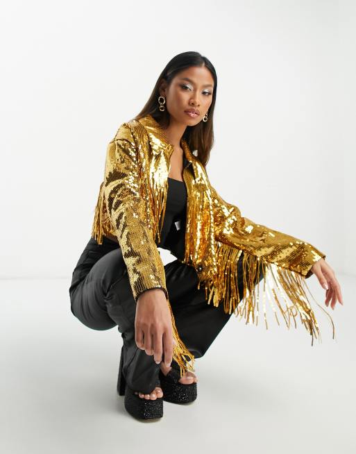 ASOS DESIGN Veste franges et sequins Dor ASOS