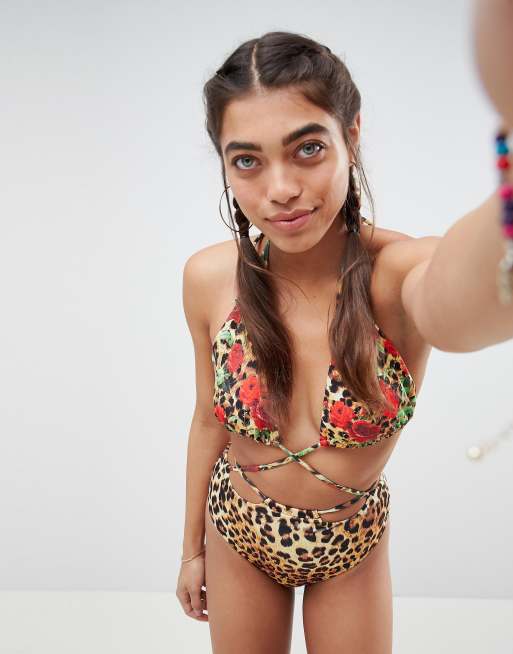ASOS DESIGN Maillot 1 pi ce bretelles imprim rose et l opard bross