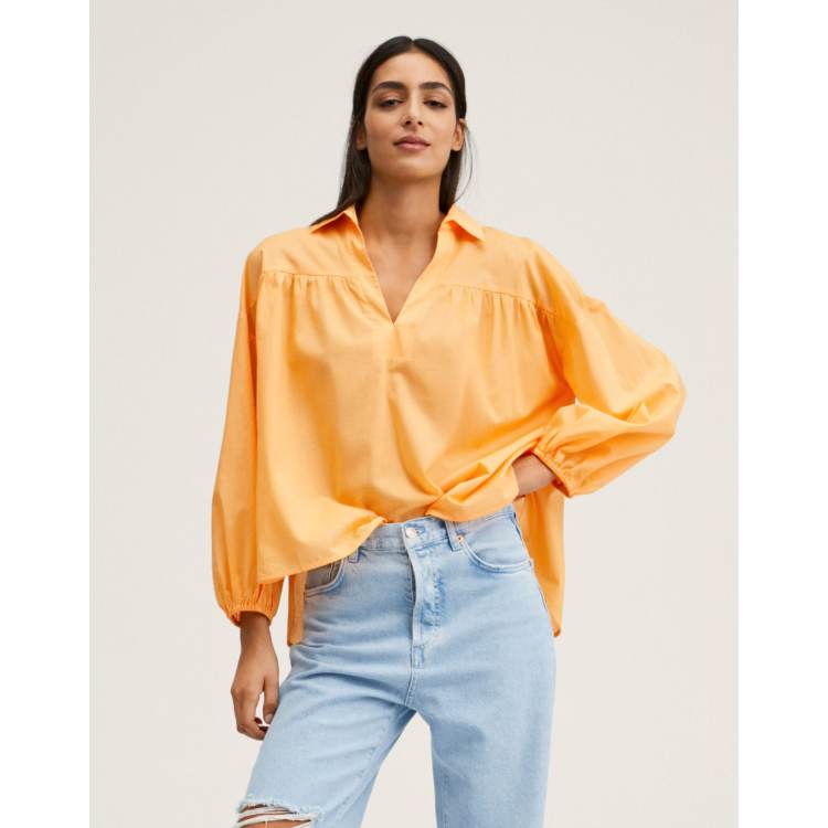 Mango Blouse col V et manches bouffantes Orange ASOS