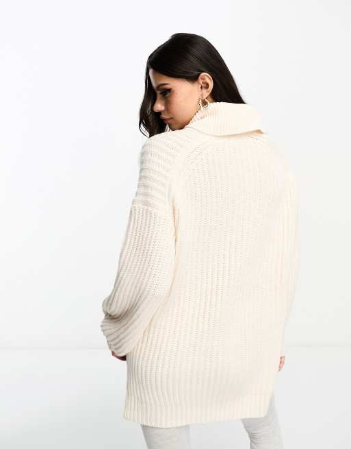 Miss Selfridge Pull long oversize col roul fendu sur les c t s Cr me