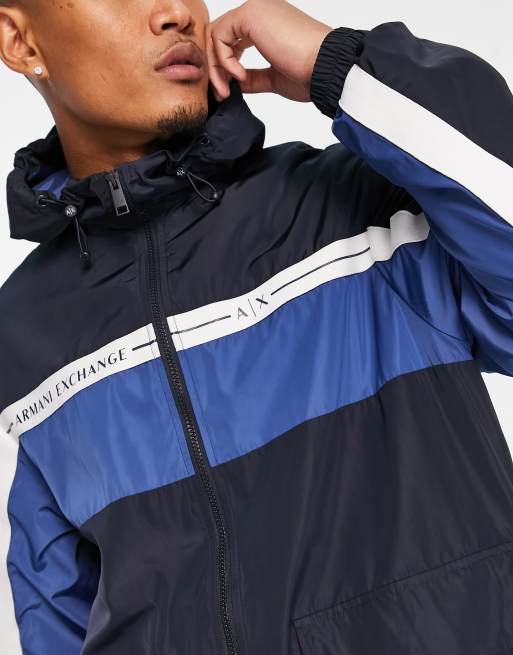 Coupe vent outlet armani homme, Armani Exchange Veste coupe vent avec bandes Bleu marine ASOS outlet