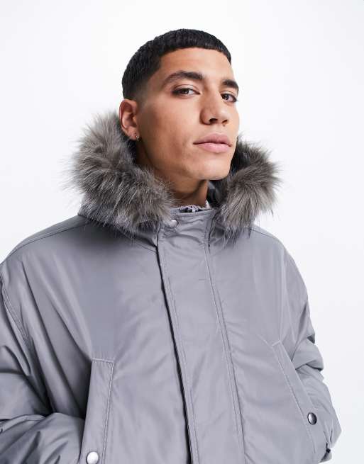 ASOS DESIGN parka jacket with faux fur trim hood in gray ASOS