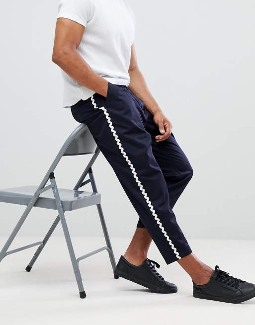 ASOS DESIGN Pantacourt large effet bouffant avec bande vagues sur le c t Bleu marine