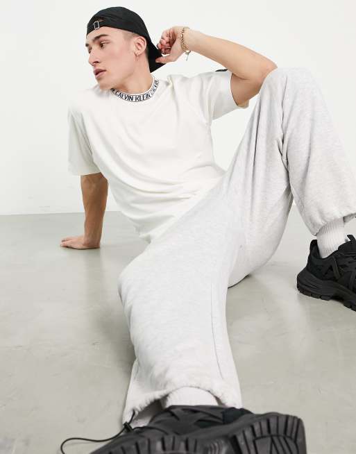 Calvin Klein T shirt with neck branding detail in cream Exclusive to ASOS