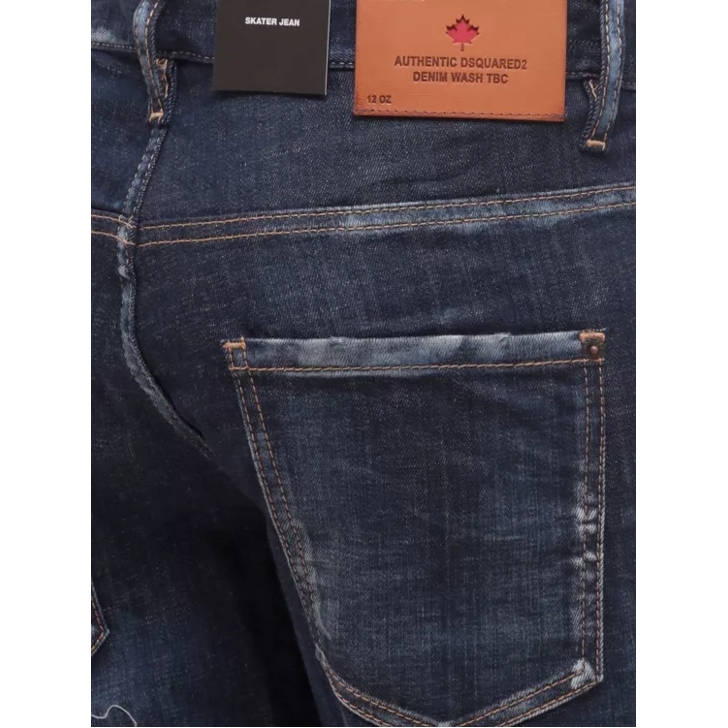 Dsquared2 Stretch Cotton Jeans With Leather Logo Blue Jeans