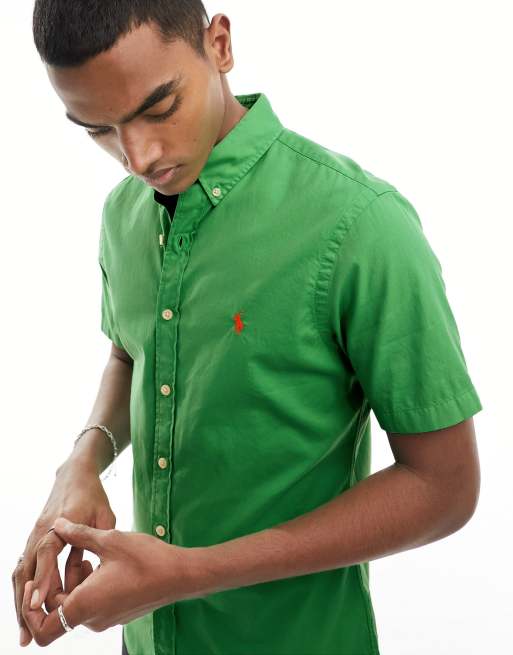 Polo outlet et chemise, Polo Ralph Lauren Chemise cintr e manches courtes et logo embl matique en serg Vert moyen outlet