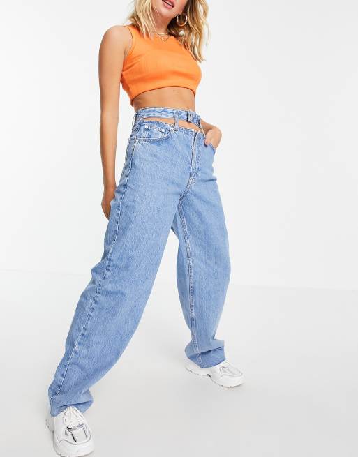 Pull Bear cut out 90 s jeans in blue