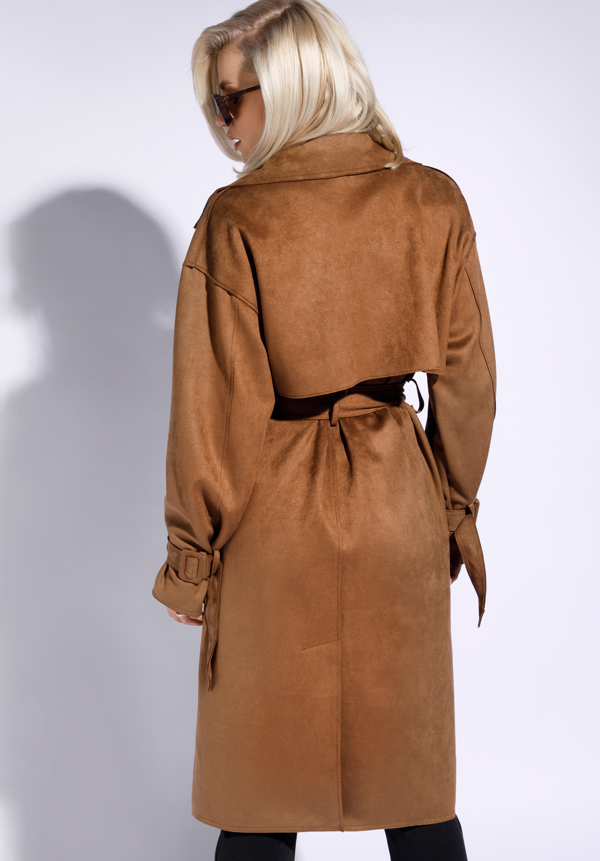 Jacket Collar Straight Long Sleeve Suede Look Women s Trench Coat
