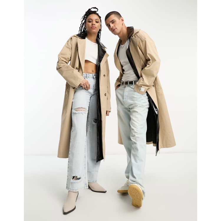 IIQUAL Trench coat unisexe avec ceinture et d tails en cuir