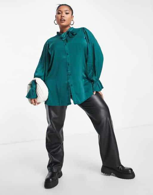 Yours Blouse manches pliss es et n ud lavalli re Vert ASOS
