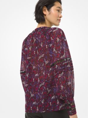 Blouse manches po te en cr pe georgette motif cachemire et en