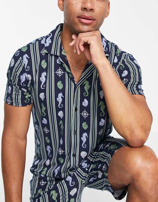 Chelsea Peers Pyjama court en jersey imprim hippocampe Bleu