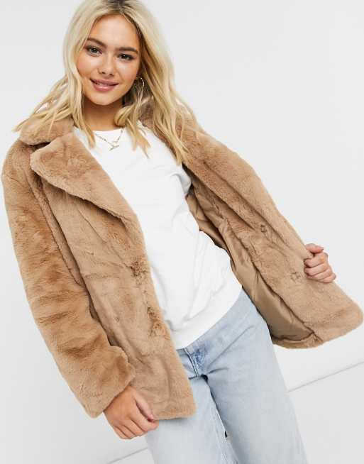 Manteau fausse fourrure outlet new look, Pale Pink Faux Fur Longline Coat New Look outlet