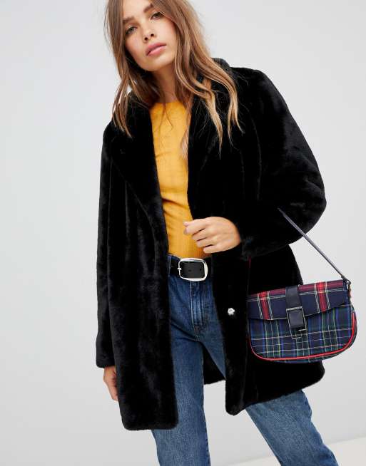 Tall Manteau noir en fausse fourrure New Look
