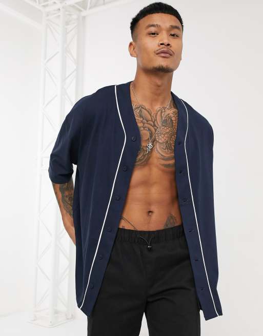 ASOS DESIGN Chemise oversize en jersey style baseball Bleu marine