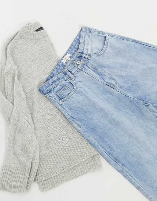 Femme Luxe high waist denim straight leg jeans in washed blue
