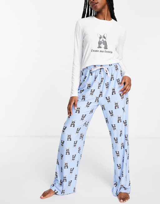 Pyjama bouledogue outlet, Loungeable Ensemble de pyjama long motif bouledogue fran ais outlet