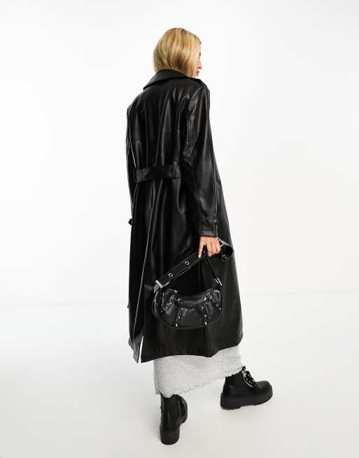 Gabardina negra con cintur n de tejido efecto cuero de Pimkie
