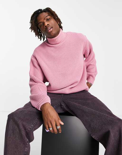 Pull col roulé outlet homme asos, ASOS DESIGN oversized fisherman rib roll neck jumper in pink twist outlet