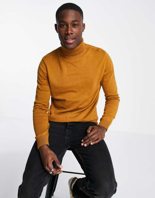 ASOS DESIGN knitted roll neck jumper with basket texture in khaki
