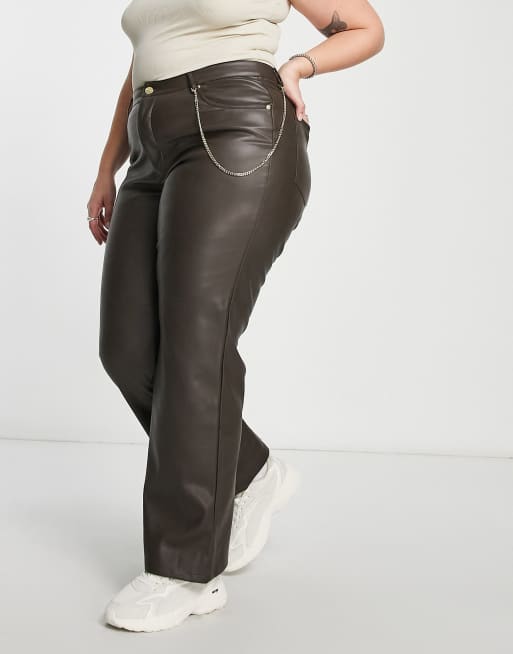 Only Curve Pantalon ample en similicuir avec d tail cha ne Marron chocolat