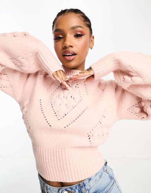 The Frolic Pull manches ballon avec d tails en maille pointelle Rose doux