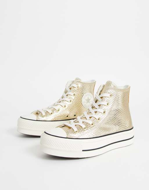 Zapatillas con plataforma y dise o de piel de serpiente dorada Chuck Taylor Hi de Converse
